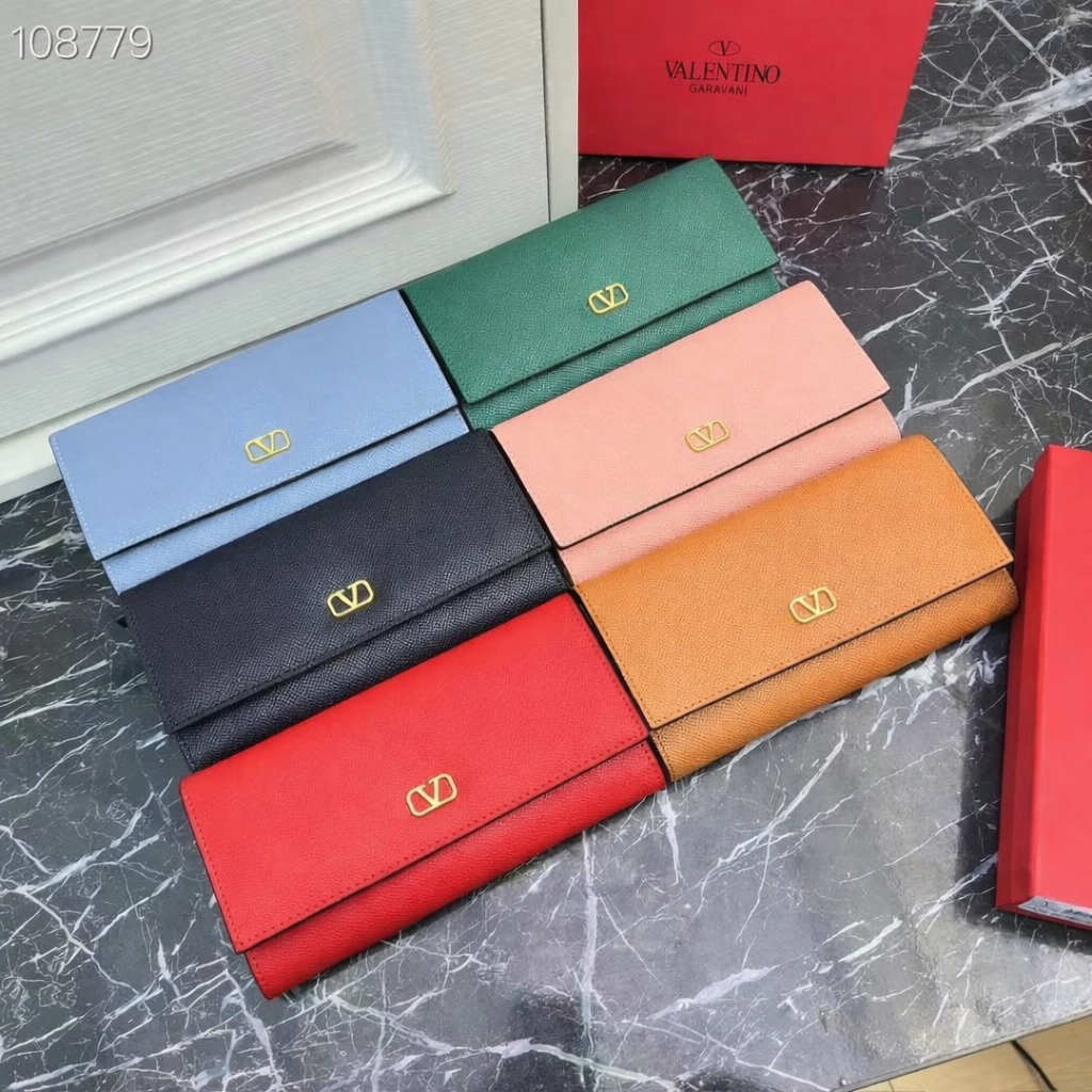 Stylish long flap wallet featuring elegant V-logo detailing and premium textured finish. Spacious, classy, and perfect for everyday or formal use. Add a touch of luxury to your collection with this Premium V-Logo Long Wallet. Designed with a sleek flap style and elegant gold-tone V logo on the front, this wallet offers a sophisticated and modern look. Crafted from high-quality textured material, it provides durability while maintaining a soft and premium feel. The long design gives you plenty of space to organize cash, cards, and important essentials neatly. Available in multiple stunning colors including Blue, Green, Pink, Black, Tan, and Red choose your favorite to match your style.